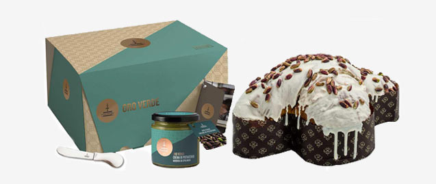 Per gli intenditori e amanti del pistacchio, la colomba Oro Verde è una vera delizia! Se ancora non fosse abbastanza pistacchioso, la confezione comprende anche la squisita crema al pistacchio per colomba da spalmare con il pratico spalmino firmato Fiasconaro, utilissima per arricchire ogni fetta della colomba.