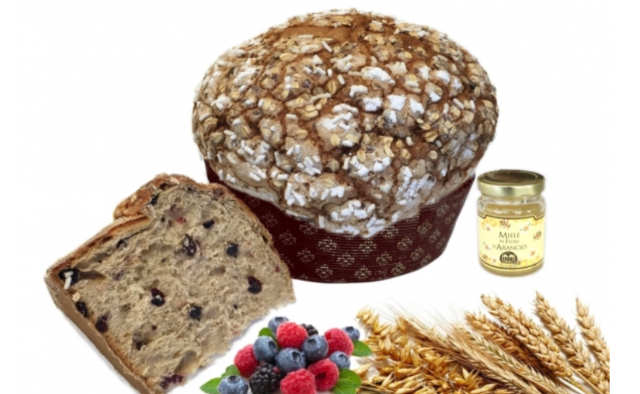 Un'altra chicca della pasticceria siciliana è il panettone artigianale di Le Cuspidi preparato con cereali di avena, grano, segale, orzo e frutti rossi accompagnato da un vasetto di miele siciliano di fiori d'arancio.