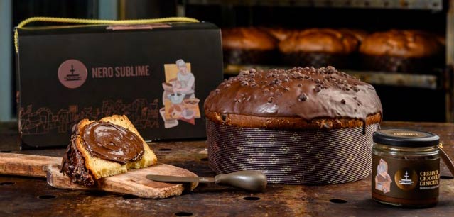 Panettone artigianale Fiasconaro nero sublime, premiato a Bruxelles con il Superior Taste Award (dall’Istituto Internazionale del Gusto e della Qualità) da una giuria composta da 120 chef e sommelier europei stellati, un Panettone Artigianale Sublime di nome e di fatto.